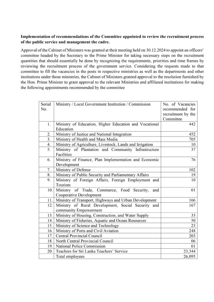 Full-Details26095 Recruitment Notice for Public Service with 23,344 Teaching Vacancies 2026 β Sri Lanka Government Jobs January 14, 2026January 14, 2026