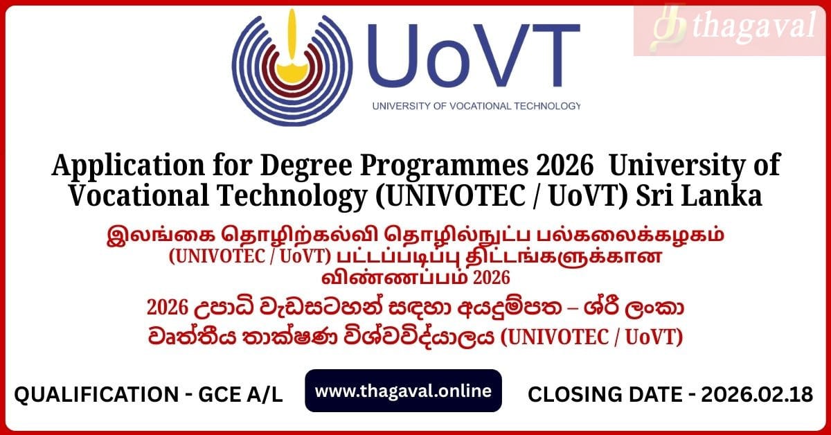 The University of Vocational Technology is a national university established under the Ministry of Education, Higher Education and Vocational Education in Sri Lanka. It focuses on industry-aligned degree programmes that combine theoretical learning with practical skills, preparing graduates for job markets both locally and globally