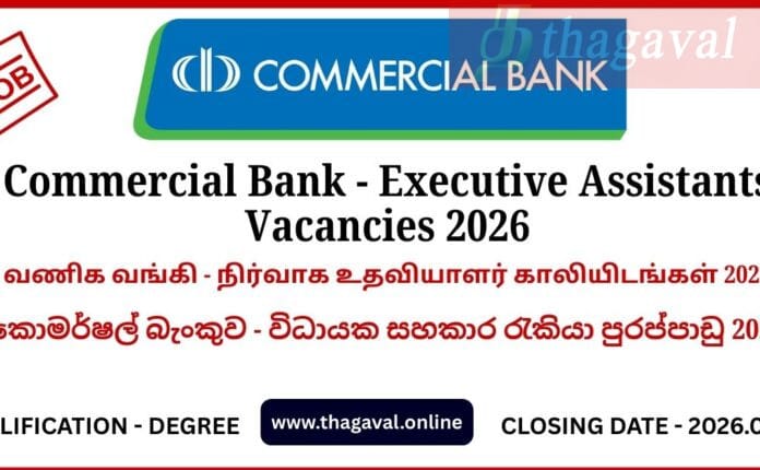 English Post / IT & Tech Jobs / Private JobsCommercial Bank – Executive Assistants Vacancies 2026 January 20, 2026January 20, 2026 - by Jaber - Leave a Comment Commercial Bank – Executive Assistants Vacancies 2026 Full Details
