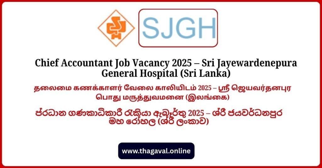Are you an experienced accounting professional seeking a career in the healthcare sector? The Sri Jayewardenepura General Hospital has announced a vacancy for the position of Chief Accountant for 2025, offering a chance to contribute to one of Sri Lankaβs leading government hospitals. This opportunity is ideal for professionals with strong financial leadership skills and a passion for public service.