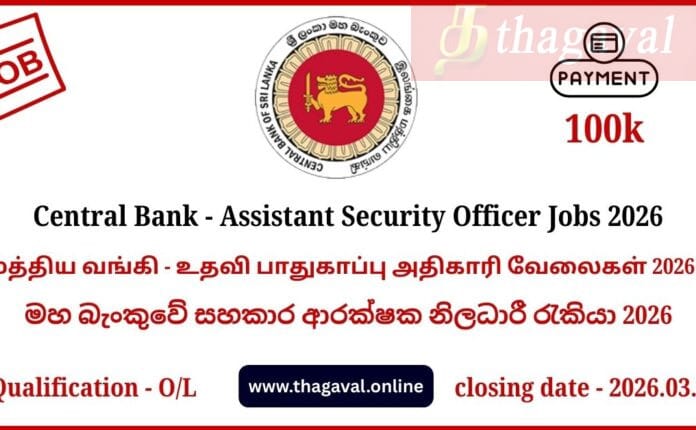 English Post / Sinhala Post / Tamil PostCentral Bank – Assistant Security Officer Jobs 2026 March 9, 2026March 9, 2026 - by Jaber - Leave a Comment Central Bank – Assistant Security Officer Jobs 2026 Full Details