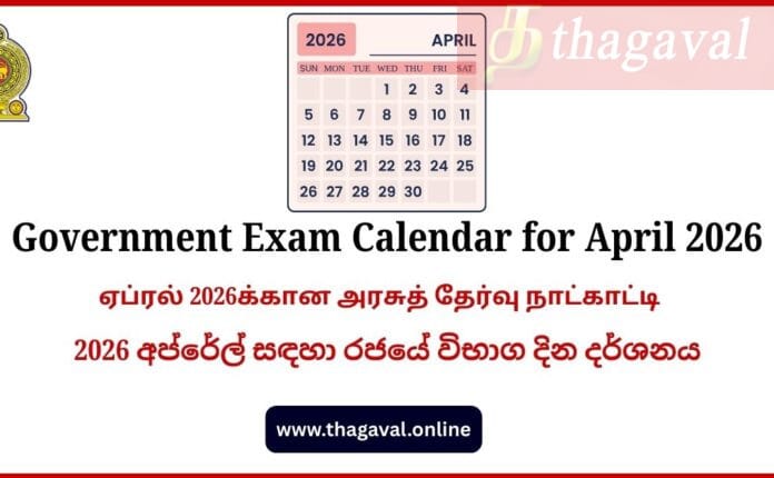 English Post / Sinhala Post / Tamil PostGovernment Exam Calendar for April 2026 March 7, 2026March 7, 2026 - by Jaber - Leave a Comment Government Exam Calendar for April 2026 Full Details