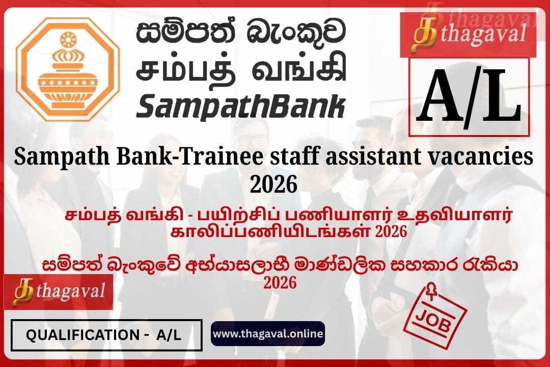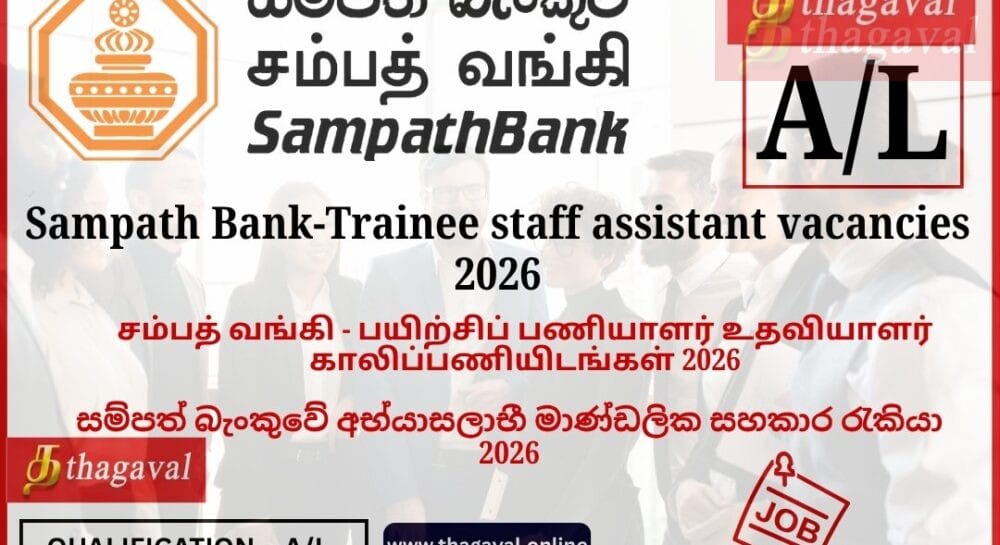 Looking to start your career in the banking sector? The prestigious Sampath Bank PLC has announced Trainee Staff Assistant vacancies for 2026. This is an excellent opportunity for young individuals who want to build a successful career in one of Sri Lanka’s leading private banks.
