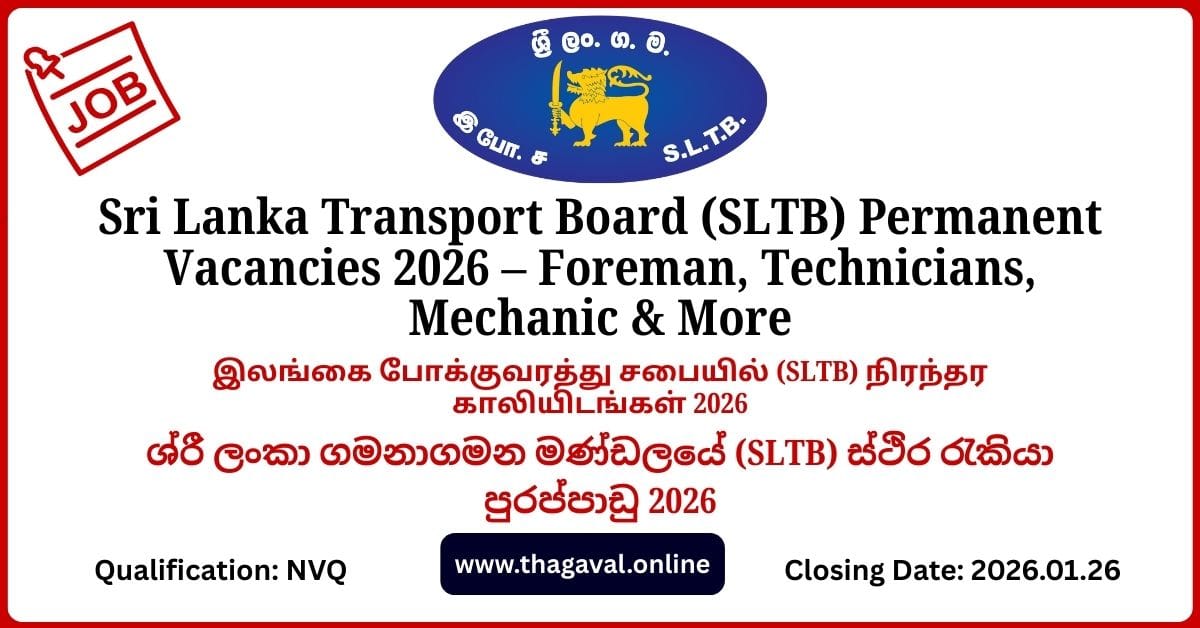 Are you searching for stable government job opportunities in Sri Lanka for 2026? The Sri Lanka Transport Board (SLTB) has opened applications for permanent technical positions in its workforce, offering long-term careers with one of the largest public transport organisations in the country.