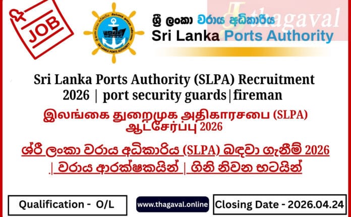 Sri Lanka Ports Authority (SLPA) Recruitment 2026 | port security guards|fireman Full Details