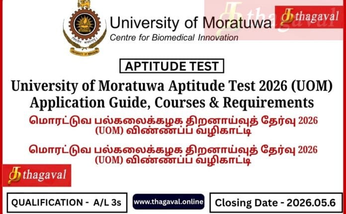 UncategorizedUniversity of Moratuwa Aptitude Test 2026 (UOM) β Application Guide, Courses & Requirements April 21, 2026 - by Jaber - Leave a Comment University of Moratuwa Aptitude Test 2026 (UOM) β Application Guide, Courses & Requirements Full Details