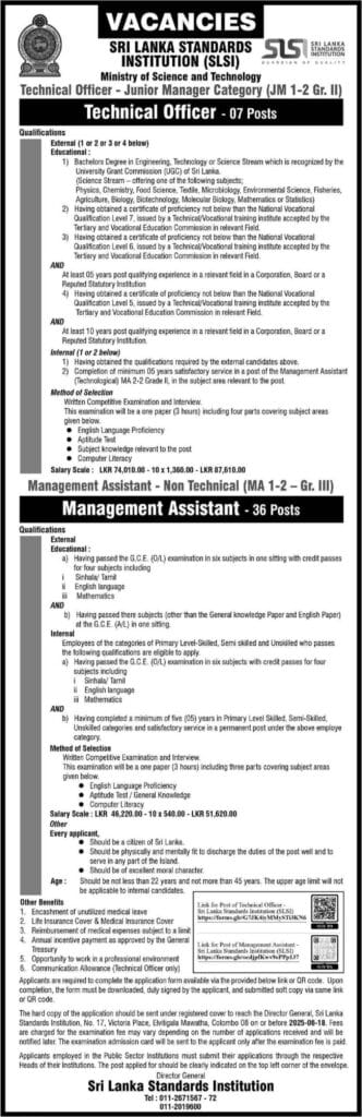 Full-DetailsTechnical Assistant Vacancies 2026 – Sri Lanka Standards Institution (SLSI) Job Openings January 15, 2026